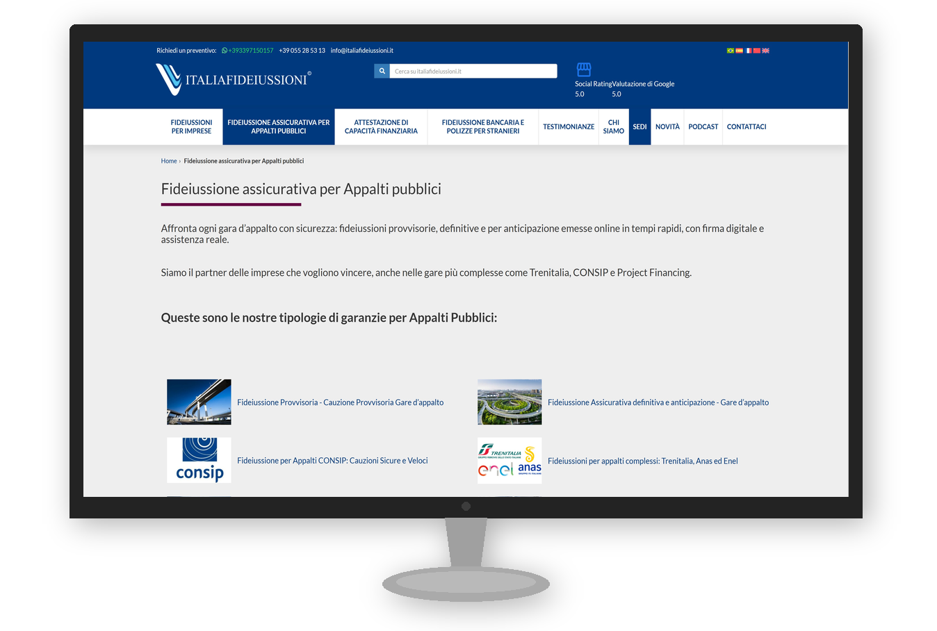 Italia Fideiussioni e’ un player specializzato nel settore delle garanzie fideiussorie e assicurative. L’obiettivo del progetto: costruire un ecosistema digitale orientato alla lead generation qualificata, con una forte base SEO e una struttura scalabile.