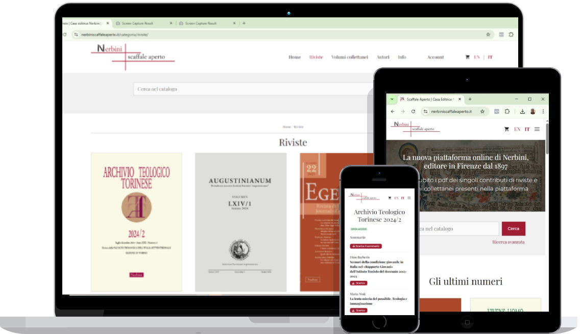 Questo ecosistema digitale è stato progettato per servire al meglio studiosi e lettori. Consente di accedere ai contenuti sia in modalità open access, sia attraverso un processo di acquisto semplice e rapido. La piattaforma è multilingua (italiano e inglese) e viene gestita in piena autonomia dal cliente, garantendo flessibilità e controllo.